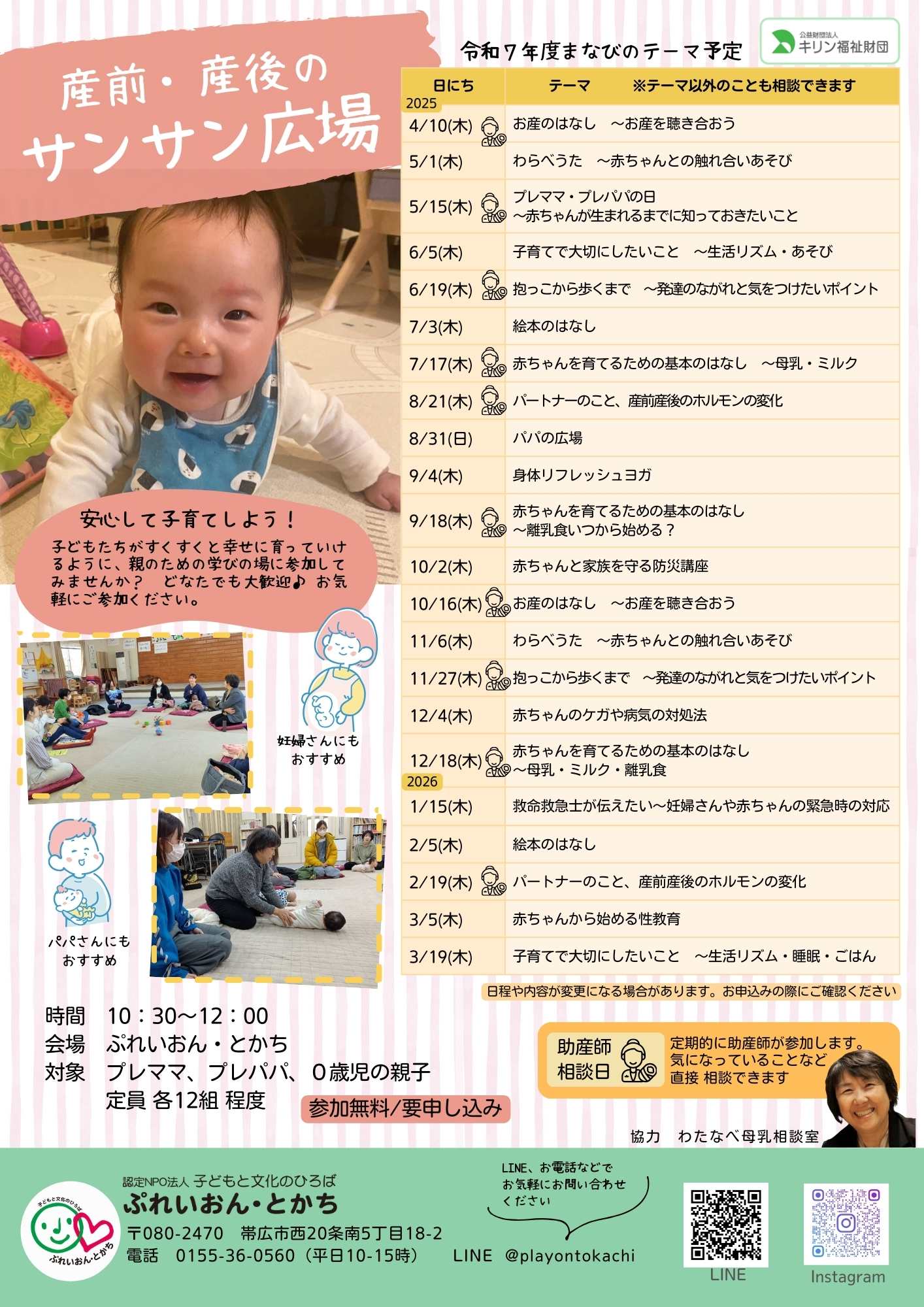 マタニティさんや0歳児の親子を対象に、仲間づくりや楽しく心地よい子育ての場所を目指して始めます。