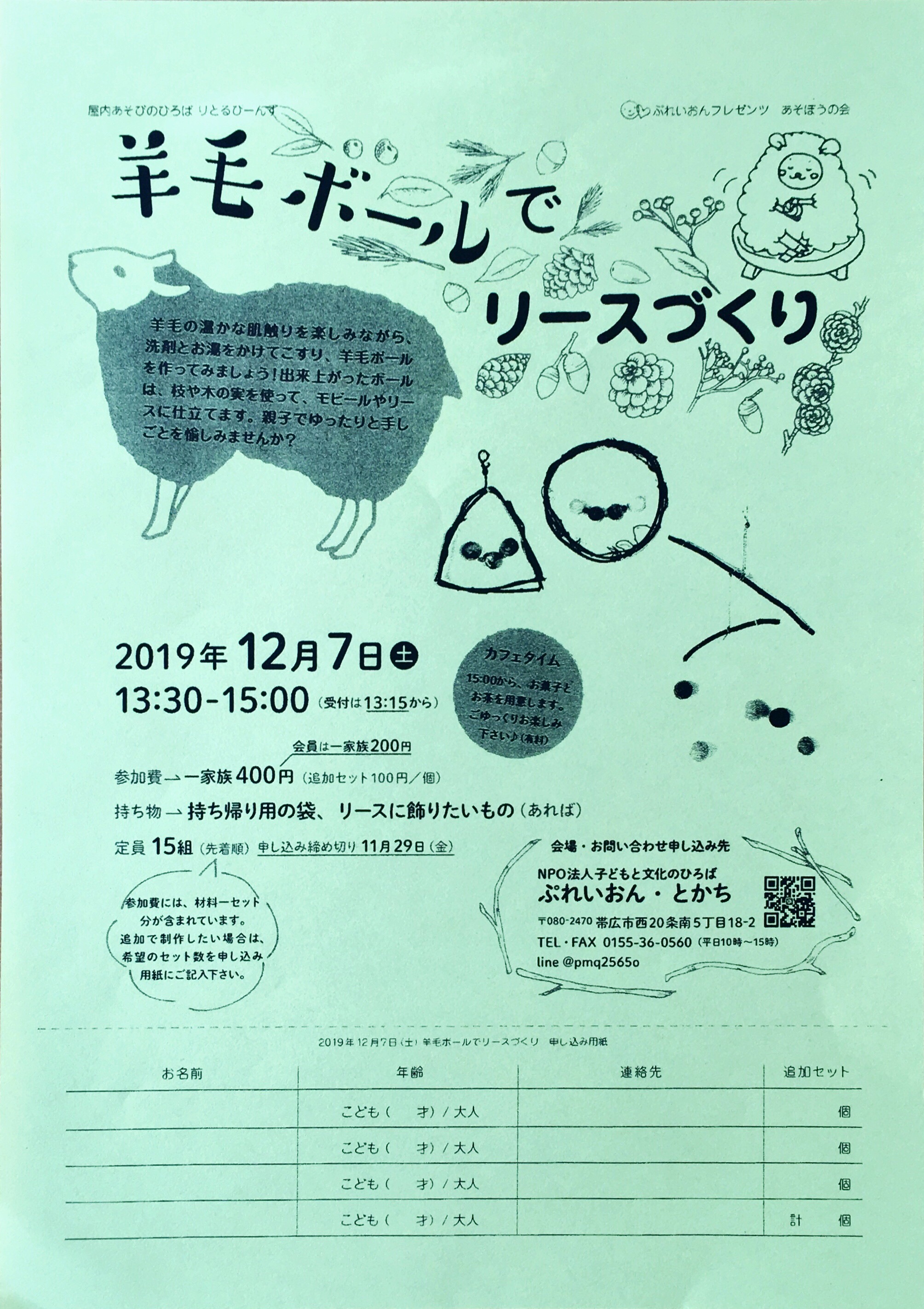 羊毛ボールでリースづくり ~室内あそびのひろば りとるびーんず~