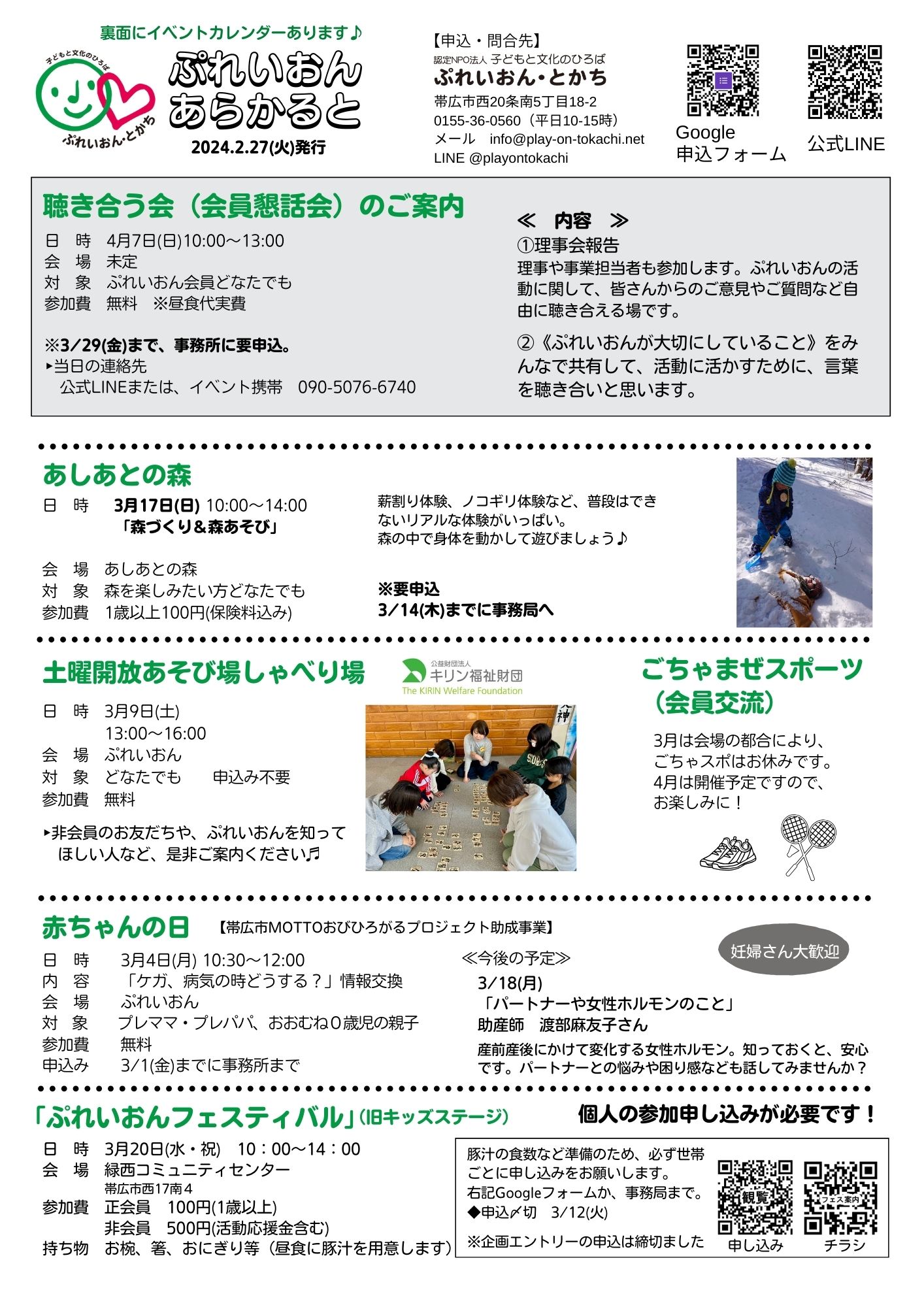 法人・団体サポート ぷれいおん日記 イベントカレンダー
