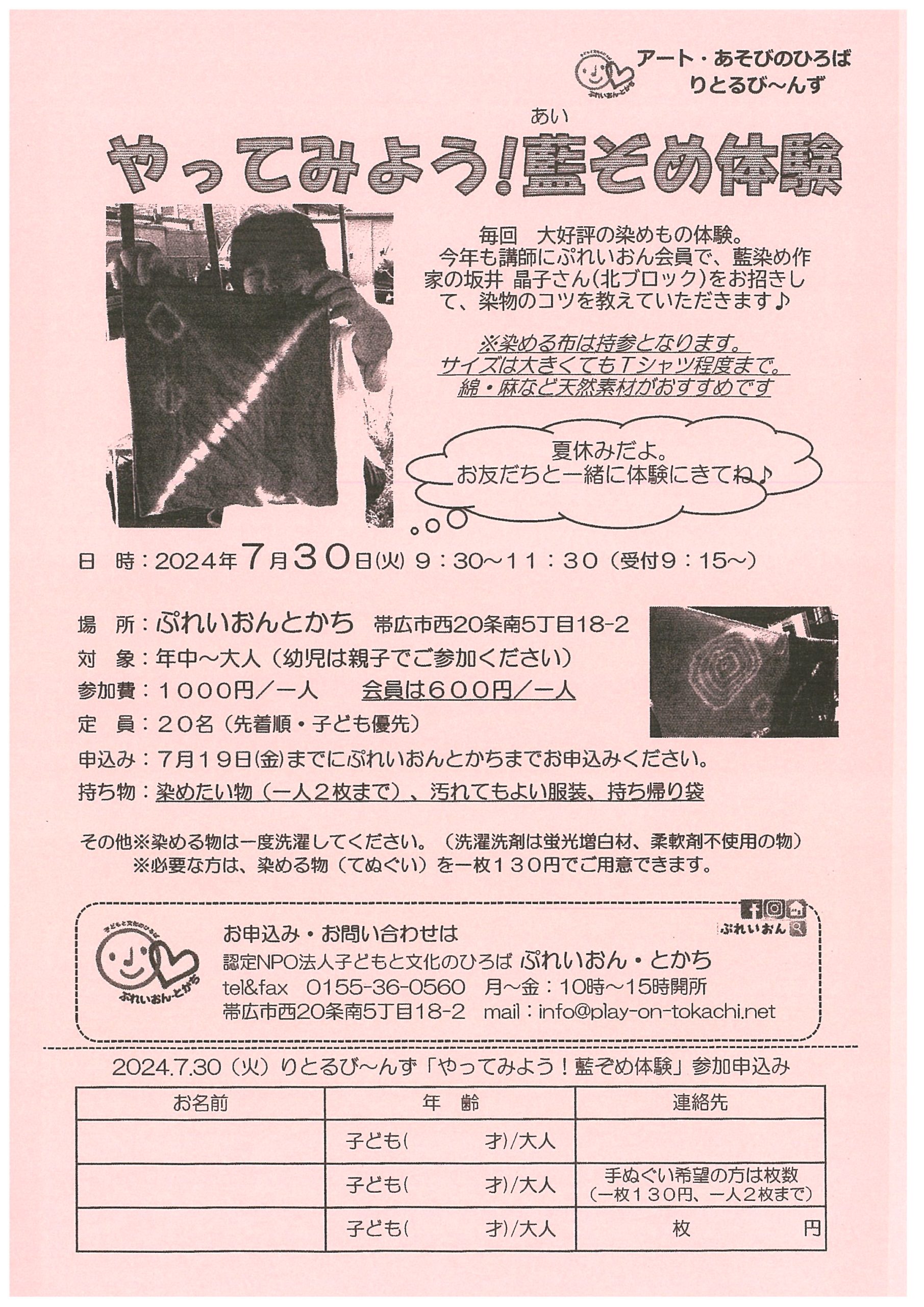 やってみよう!藍ぞめ体験 ~りとるびーんず~