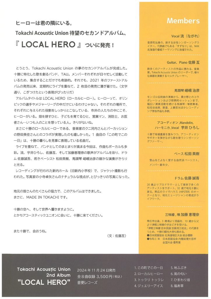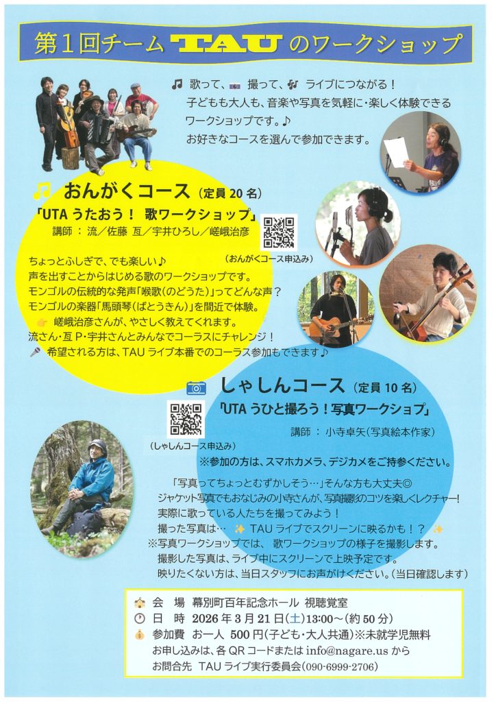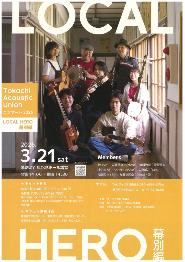 十勝アコースティックユニオン コンサート2026【チケット取扱い中】 投稿日:2026 年 2 月 12 日(木) | | 第1回チームTAUのワークショップのご案内も届いています♪ コンサートのチケットはぷれいおんでも購入できます! 十勝アコースティックユニオン コンサート2026【チケット取扱い中】